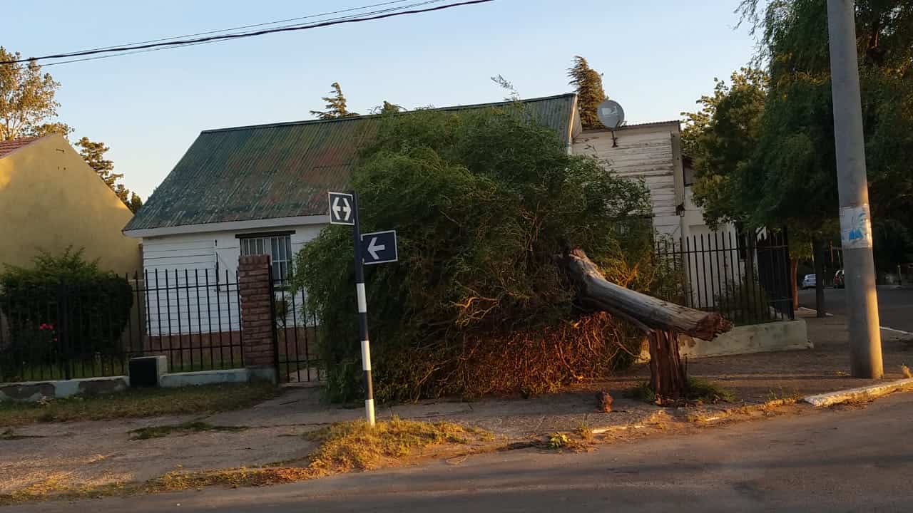 Durante la tarde, los voluntarios de Plaza Huincul, acudieron al barrio Uno ante la caída de un árbol sobre las rejas de una casa, en la avenida Pedro Rotter, al costado de la capilla Santa Teresita.