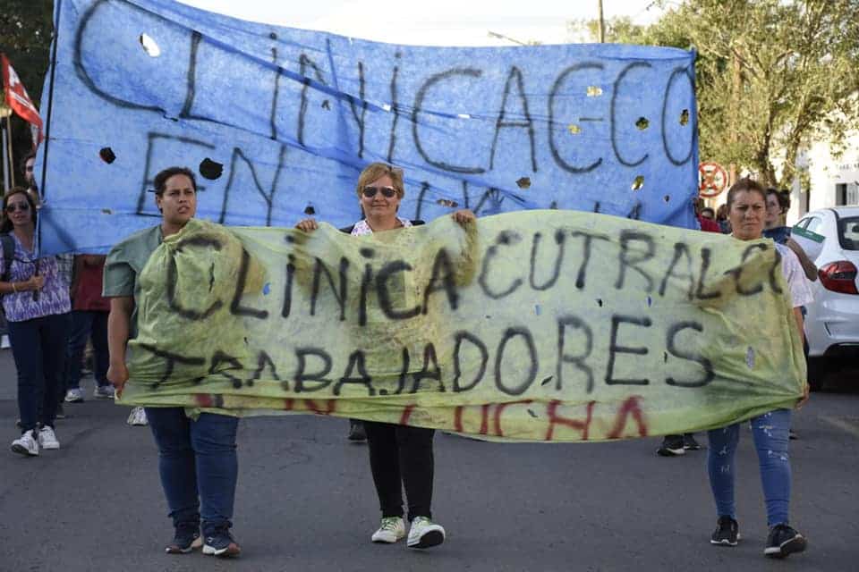 Los trabajadores y trabajadoras de la Clínica Cutral Co volvieron a marchar este viernes por la tarde.