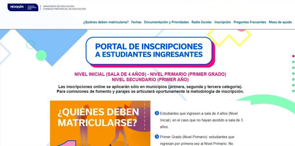 El Consejo Provincial de Educación (CPE) habilitó este viernes el Portal de Inscripciones a Estudiantes Ingresantes para toda la provincia del Neuquén. Se puede visitar en: https://inscripciones.neuquen.edu.ar/#1
