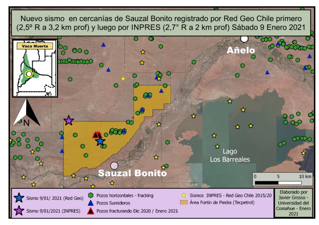 Otro sismo se registro hoy de magnitud 2,7 en el paraje Sauzal Bonito, que según se informó fue localizado a 2 kilómetros de profundidad.