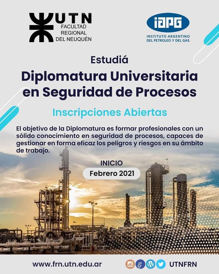 Las inscripciones continúan abiertas para la Diplomatura Universitaria en Seguridad de Procesos en la FRN UTN. Hay tiempo para hacerlo hasta el 31 de enero, y se empieza a cursar en febrero.