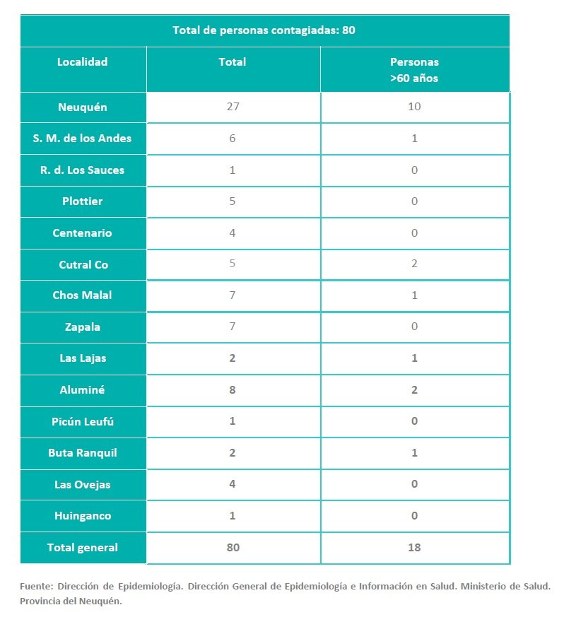 Se trata de cinco casos de Cutral Co, Plaza Huincul no registró nuevos contagios. Mientras que el total de casos en la provincia es de 80 nuevas personas contagiadas de coronavirus.