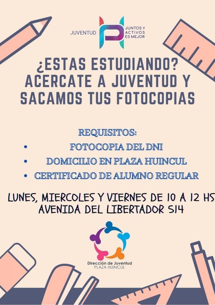 Desde la dirección municipal de Juventud invitan a la inscripción de estudiantes de nivel secundario y ciclos superiores, para acceder al beneficio de retiro gratuito de fotocopias.