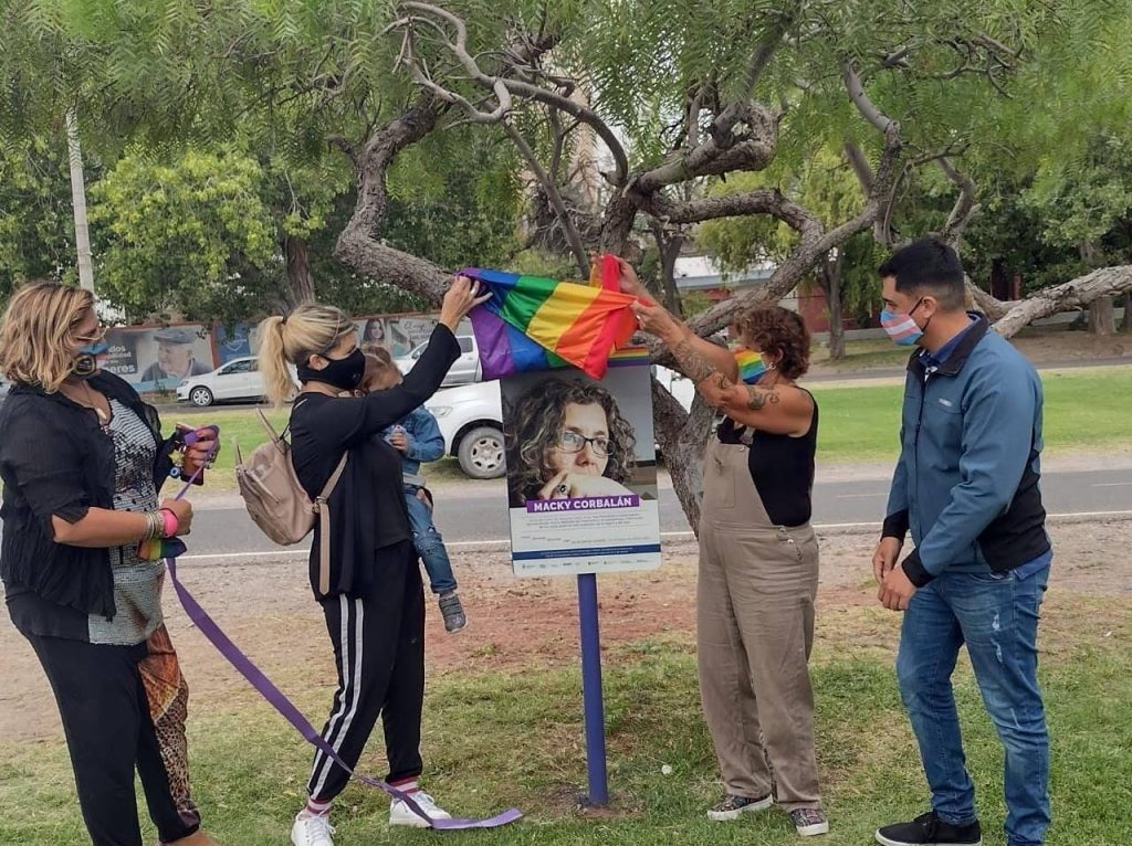 El pasado viernes 5 de marzo, en el Paseo de la Diversidad de la Ciudad de Neuquén, se descubrió una placa en homenaje a Macky Corbalán, poeta de la comarca.