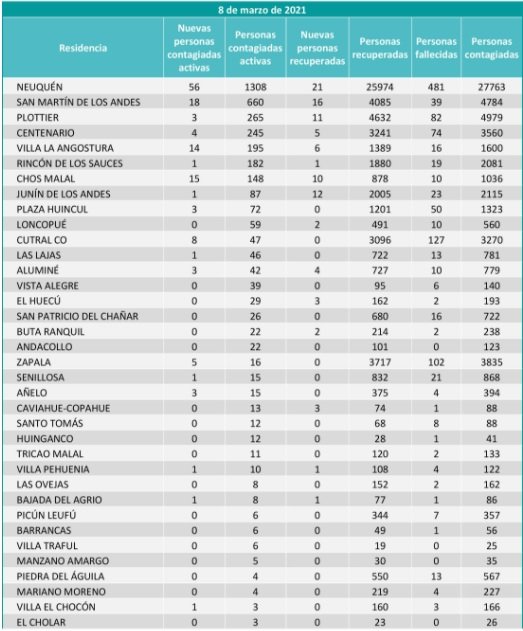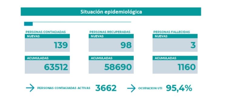 En total, en la provincia hubo 139 nuevos casos y tres personas fallecidas. En total, los casos activos de la comarca petrolera son 119: 72 corresponden a Huincul y 47 a Cutral Co.