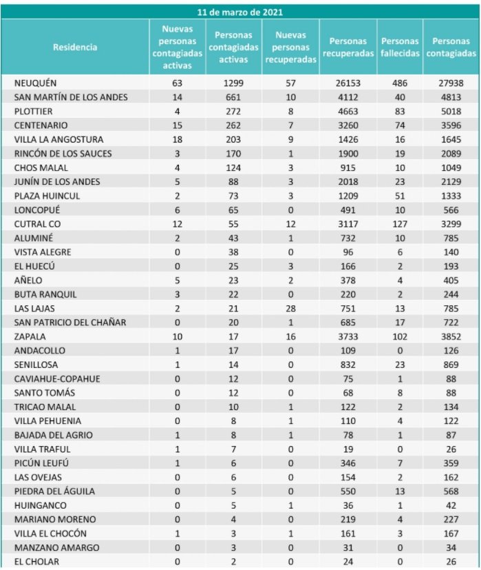 En total, en la provincia hubo 176 nuevos casos y cuatro personas fallecidas. En total, los casos activos de la comarca petrolera son 128 : 73 corresponden a Huincul y 55 a Cutral Co.
