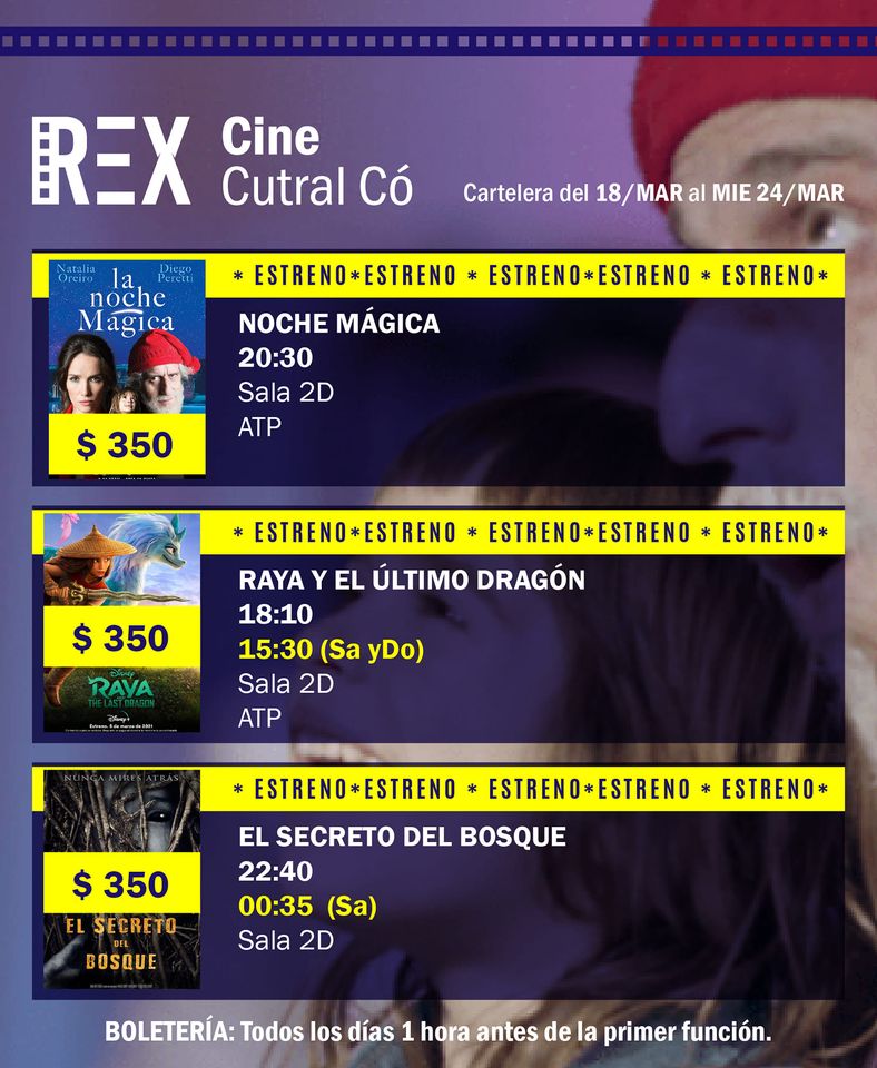 En cartelera están disponibles desde hoy hasta el miércoles 24, las siguientes películas: “Raya, el último dragón”, “Noche Mágica” y “El secreto del bosque”, en diferentes horarios y días. La boletería abre sus puertas una hora antes de cada función. El costo de las entradas es es de 350 pesos y se puede sacar también de manera virtual.