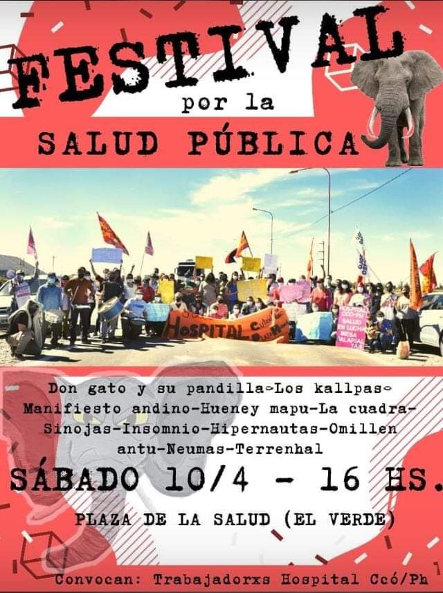 El Festival por la Salud Pública se hará este sábado en la Plaza de la Salud del barrio 25 de Mayo de Cutral Co. Habrá 11 bandas en vivo y otras intervenciones artísticas.