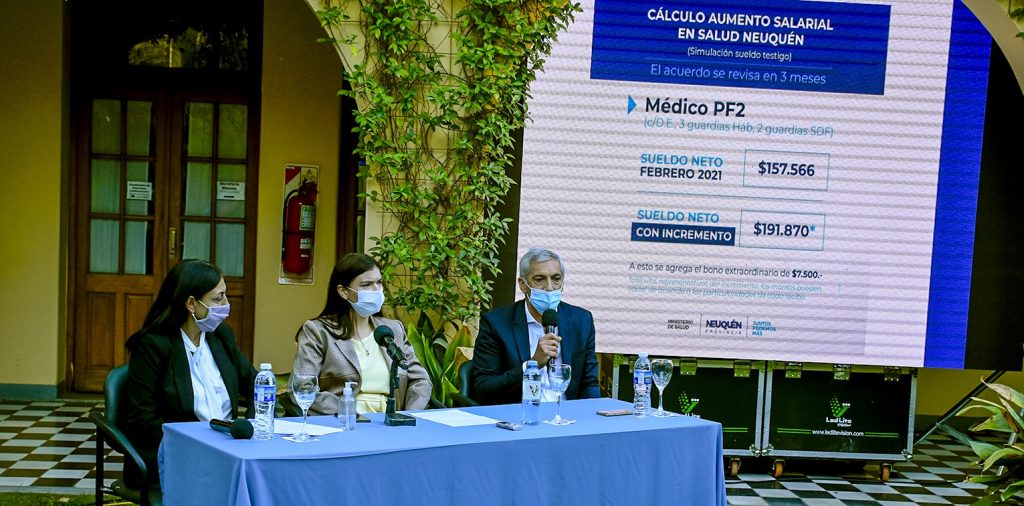 “Esta propuesta para los trabajadores de salud es impulsada por el gobernador Omar Gutiérrez, en pos de solucionar el conflicto y es en reconocimiento por la labor que realizaron durante el año pasado”, sostuvo Pons y reiteró que -como se acordó con los gremios estatales en ocasión de definir la pauta salarial para este primer semestre-, en julio está prevista una nueva mesa salarial para establecer la pauta hasta fin de año.