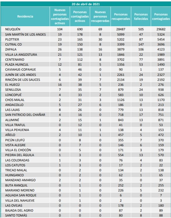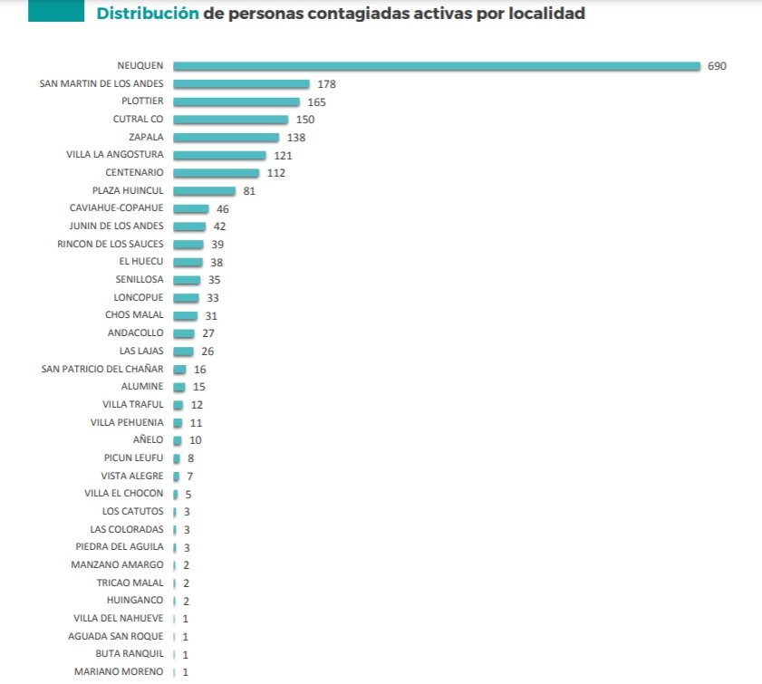 En la provincia, los nuevos casos son 305 y se reportaron 2 fallecimientos. En cuanto a los casos activos en Cutral Co son 150 y 81 en Huincul, por lo que entre los dos se eleva la cifra a 231.
