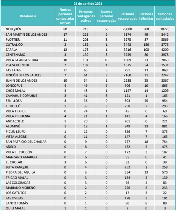 Este lunes suma cuatro casos de coronavirus en la comarca petrolera, dos corresponden a Cutral Co y dos en Plaza Huincul. En cuanto a los recuperados son dos personas -una de cada localidad- y los casos activos son 182 y 102, respectivamente.