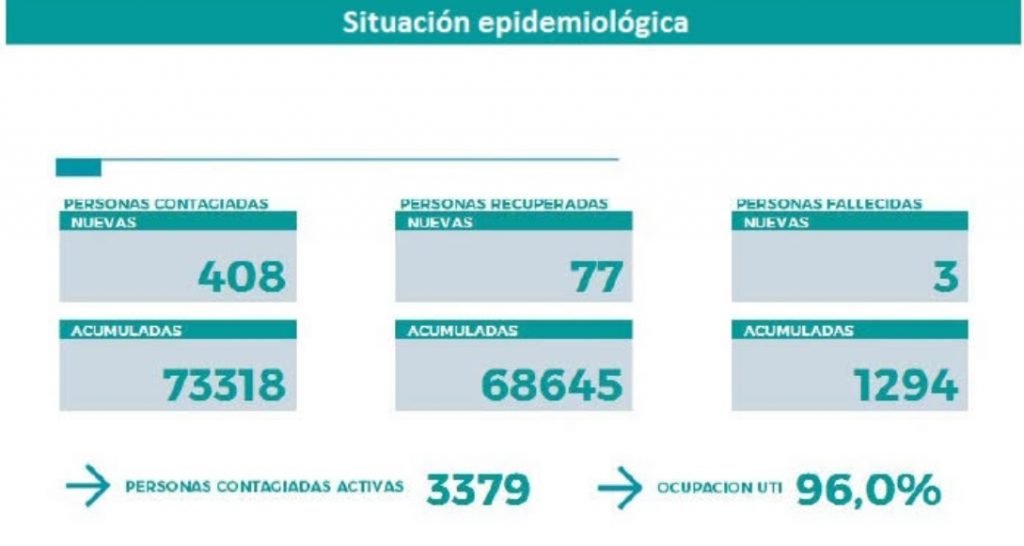 Esta noche, el parte provincial confirmó 408 casos en la provincia y tres personas fallecidas.