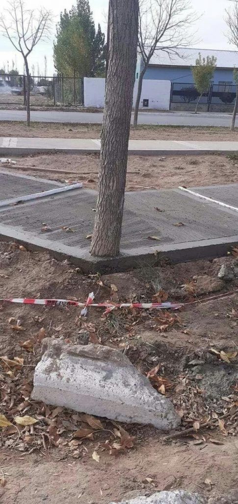 El municipio impulsa una campaña de renovación y acondicionamiento de espacios públicos y, entre ellos, está la reparación de veredas y forestación del bulevar de avenida Castagnous. Sin embargo, la obra se encontró con un imprevisto: un árbol quedó dentro del tendido de las sendas peatonales y su tronco fue rodeado por una capa de concreto.