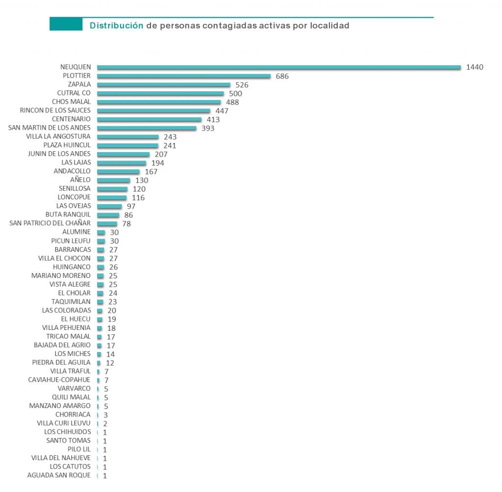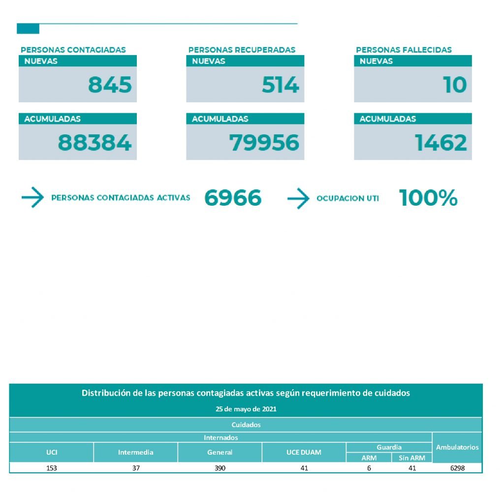 En cuando a las personas recuperadas son 514 en toda la provincia. La ocupación de las camas es del 100,0 % y las personas activas son 6966