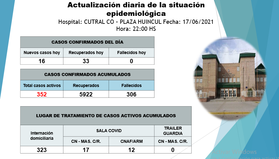 El parte que brindó el hospital de Complejidad Media informó que no se registraron fallecidos este jueves. Además se confirmaron 16 casos de coronavirus. En cuanto a los recuperados fueron 33 pacientes.
