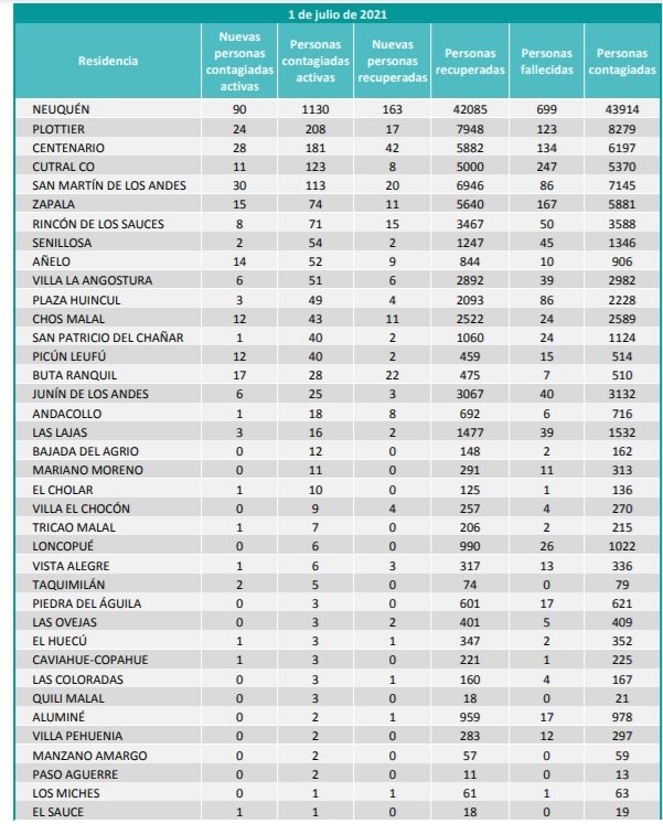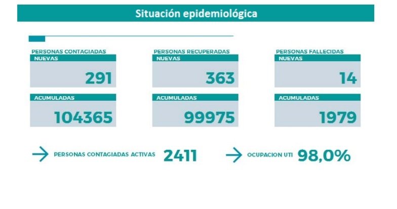 Las personas recuperadas son 363 en todo el territorio provincial. En cuanto a la ocupación de las camas UTI descendió al 98 %.