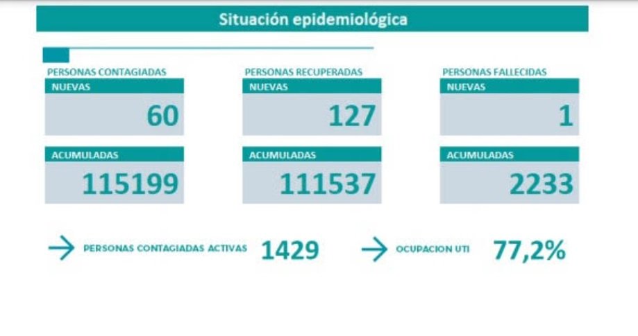 En cuanto a los casos activos son 1.429 en toda la provincia y las camas ocupadas en la unidad de terapia intensiva, UTI, son del 77,2 %.