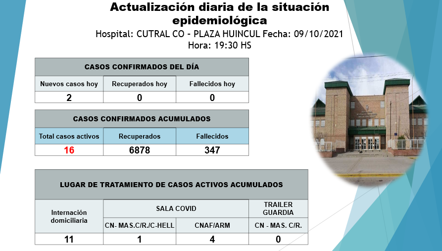 En Cutral Co y Plaza Huincul, este sábado se reportaron dos nuevos casos de coronavirus y, por suerte, sin fallecidos en la comarca petrolera. Tampoco hubo pacientes recuperados.
