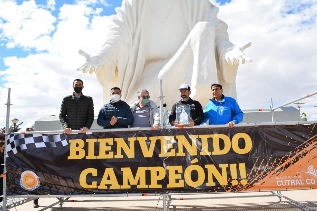 El intendente José Rioseco, le obsequió justamente una imagen a escala de la figura escultórica representativa de la ciudad. “Sabemos que Cristo siempre te acompañó en todas tus carreras, y hoy te queremos regalar este símbolo para todos los cutralquenses”, dijo el jefe comunal.