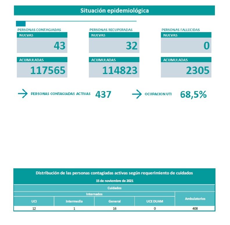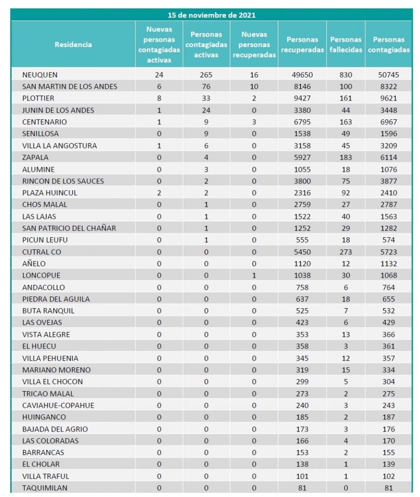 En toda la provincia, los casos activos de coronavirus son 437. Mientras que la ocupación de camas UTI en todo el territorio neuquino es de 68,5 %.