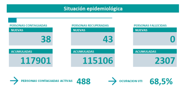 Se detalló también que el nivel de ocupación de las camas de terapia intensiva es del 68,5%.