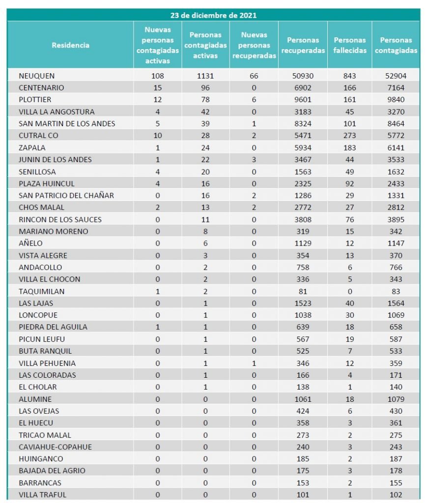 El comité de emergencias de la provincia informó que hubo 168 casos nuevos, entre ellos los 14 casos de Cutral Co y Plaza Huincul.