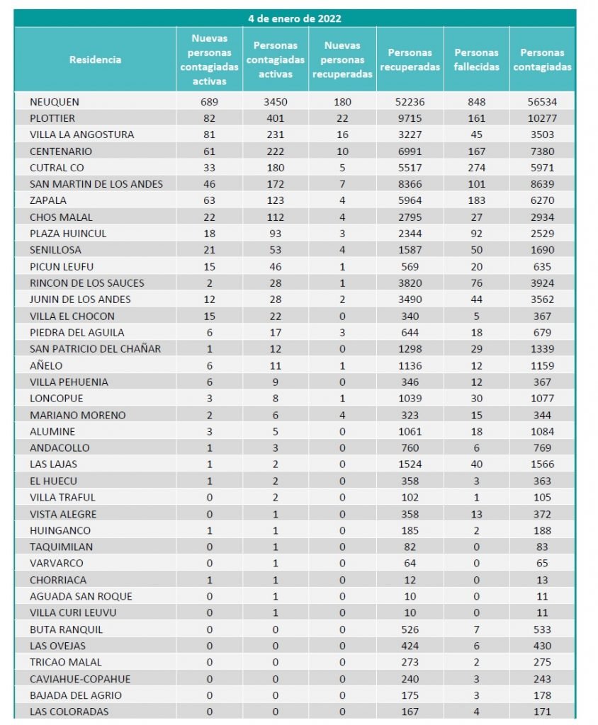 El parte diario que emite el comité de emergencia provincial informó esta noche 1.192 casos positivos nuevos y una persona que falleció como consecuencia del coronavirus, este martes en la provincia de Neuquén.