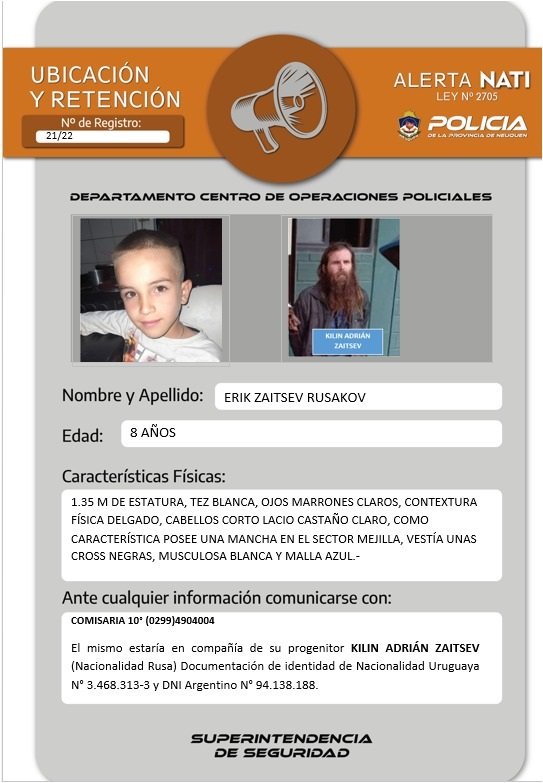 En principio, el jefe de la dirección Seguridad Añelo, Claudio Vinet explicó que la familia que tiene a su cuidado al niño -porque la madre está en otro país- explicó que el sábado se acercó por las inmediaciones el padre del nene. Sin embargo, como no pueden tener contacto, no se le permitieron mayor acercamiento. Hasta que anoche “radicaron la denuncia porque desde la tarde no encontraban al niño”, explicó.