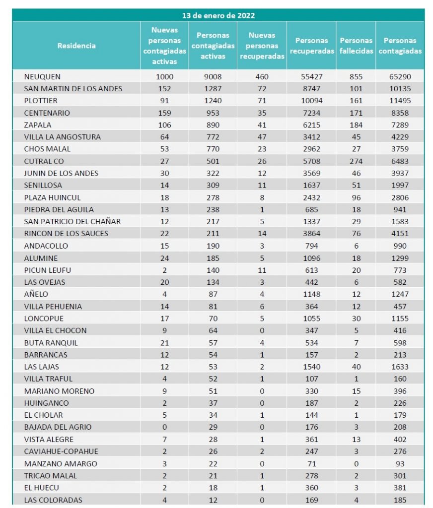 La información suministrada por el comité de emergencias de la provincia indica que hay 18.505 personas que están contagiadas de COVID-19. De ellas 956 están en Cutral Co y Plaza Huincul