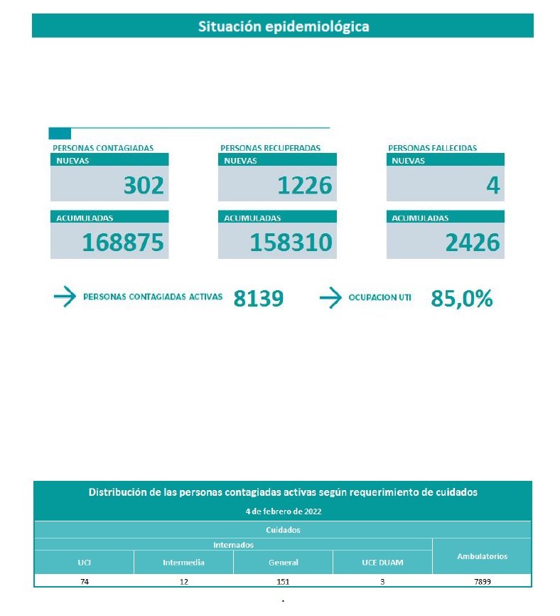También se detalló que se confirmaron 302 personas y que hay 1226 personas recuperadas.