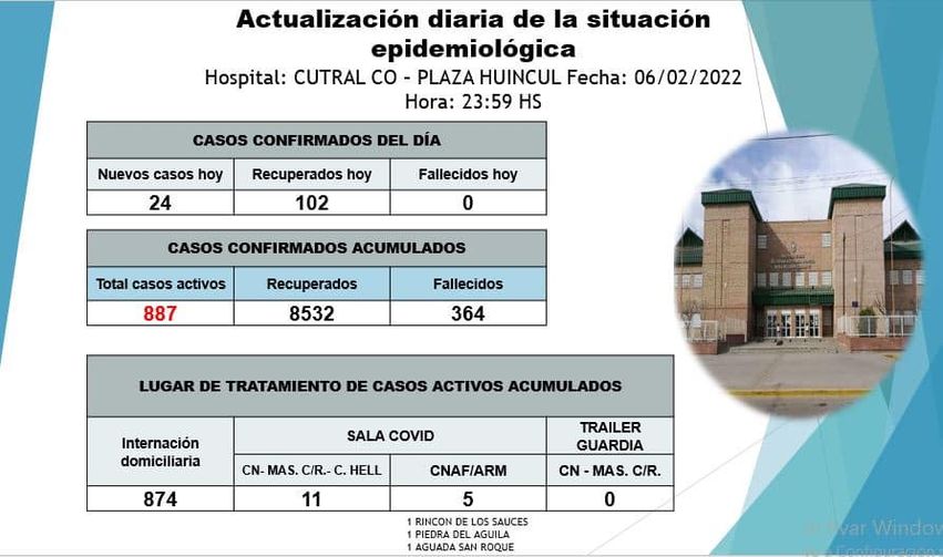 El informe epidemilógico de este domingo 06 de febrero confirmó que hubo 24 nuevos casos, 102 recuperados y sin fallecidos de coronavirus en Cutral Co y Huincul.