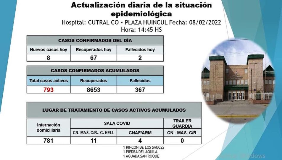 El informe de la situación epidemiológica en Cutral Co y Plaza Huincul indica que fallecieron seis personas en los últimos siete días. En la jornada de este martes fallecieron 2.