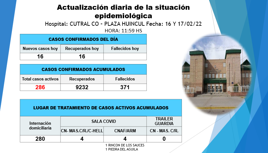 En último parte epidemiológico emitido por el hospital Complejidad Media informaron que hubo 16 nuevos casos, 16 recuperados y sin fallecidos de coronavirus entre el 16 y 17 de febrero.