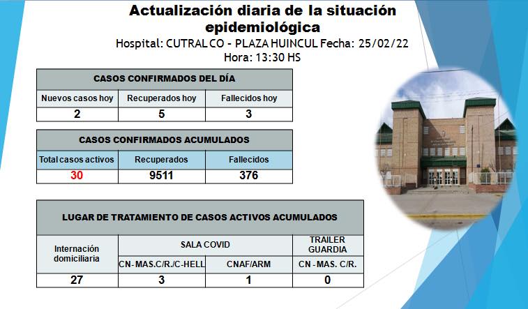 El parte epidemiológico del hospital zonal indica que tres personas, de las que estaban complicadas e internadas, fallecieron en las últimas 24 horas.