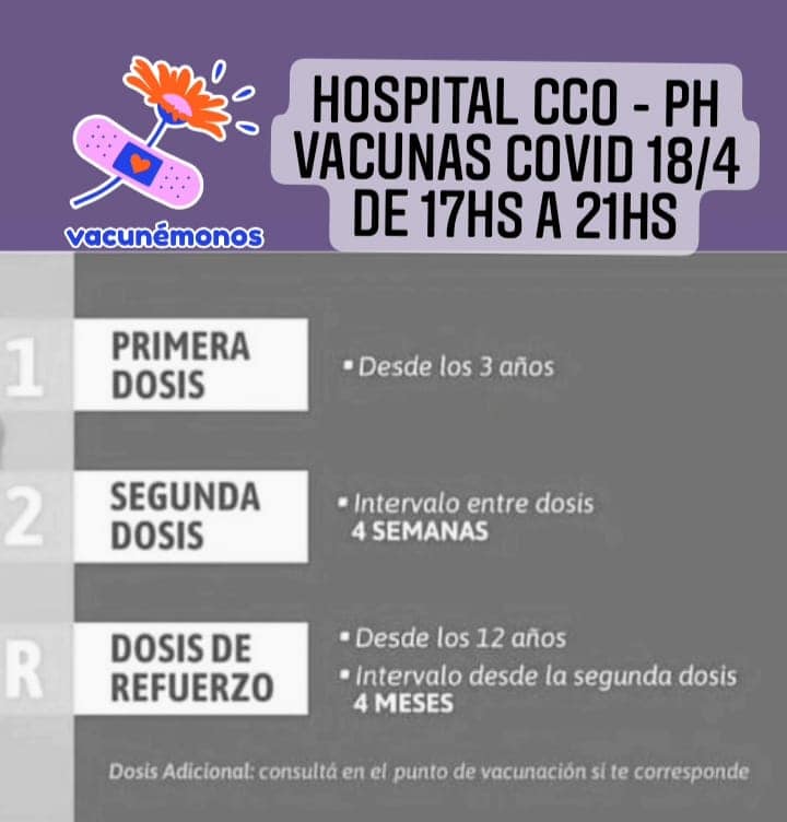 Y luego, desde las 17 a las 21 se vacuna en el hospital. Hay que concurrir con el DNI y el carnet de vacunación.