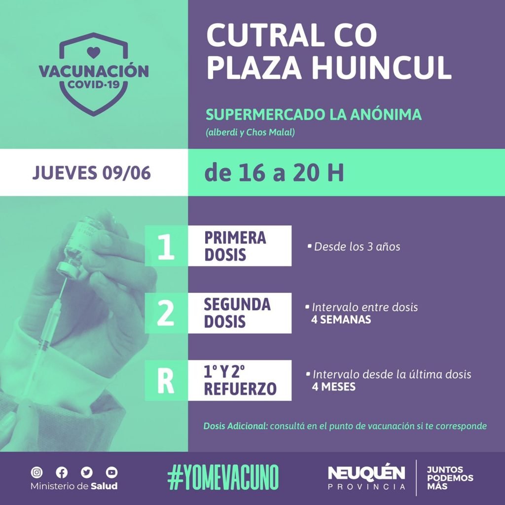 Este jueves continuará la campaña de vacunación contra el coronavirus en el supermercado La Anónima, en Plaza Huincul.