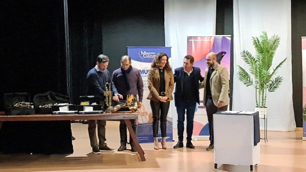 Por otro lado, el ministro Colonna hizo entrega de una serie de instrumentos musicales para seguir fortaleciendo la Banda Sinfónica Infanto Juvenil de Plaza Huincul. Esta última forma parte del programa provincial “Música en Bandada”, que busca fomentar la creación y el fortalecimiento de orquestas y ensambles infantojuveniles en toda la provincia, creando nuevos espacios y oportunidades para niñas, niños, adolescentes y jóvenes.