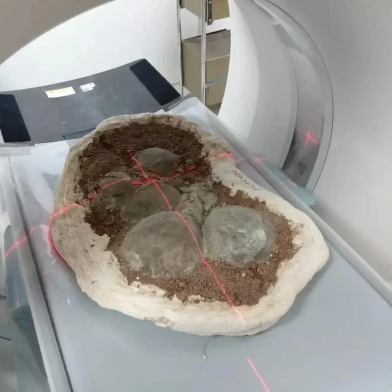 “El objetivo fue saber si las imágenes generadas por el tomógrafo permiten detectar la presencia de huesos de embriones en huevos cerrados. Para eso se tomografiaron, a modo de control, huevos con embriones ya identificados. De esa manera eventualmente podremos ver si los embriones generan un tipo de imagen en particular, para luego buscarla en huevos sin abrir. A su vez, las imágenes pueden indicar diferencias de densidad en las cáscaras de los huevos, lo cual puede relacionarse con la conductividad del oxígeno en vida del animal” precisaron desde el Museo Carmen Funes de Plaza Huincul.