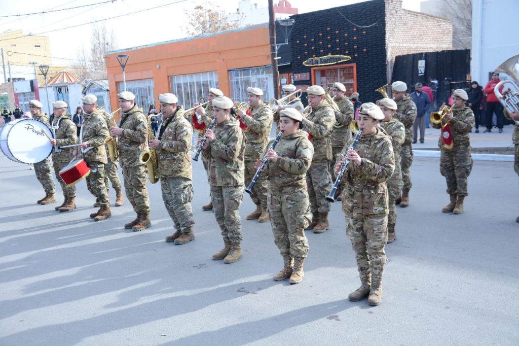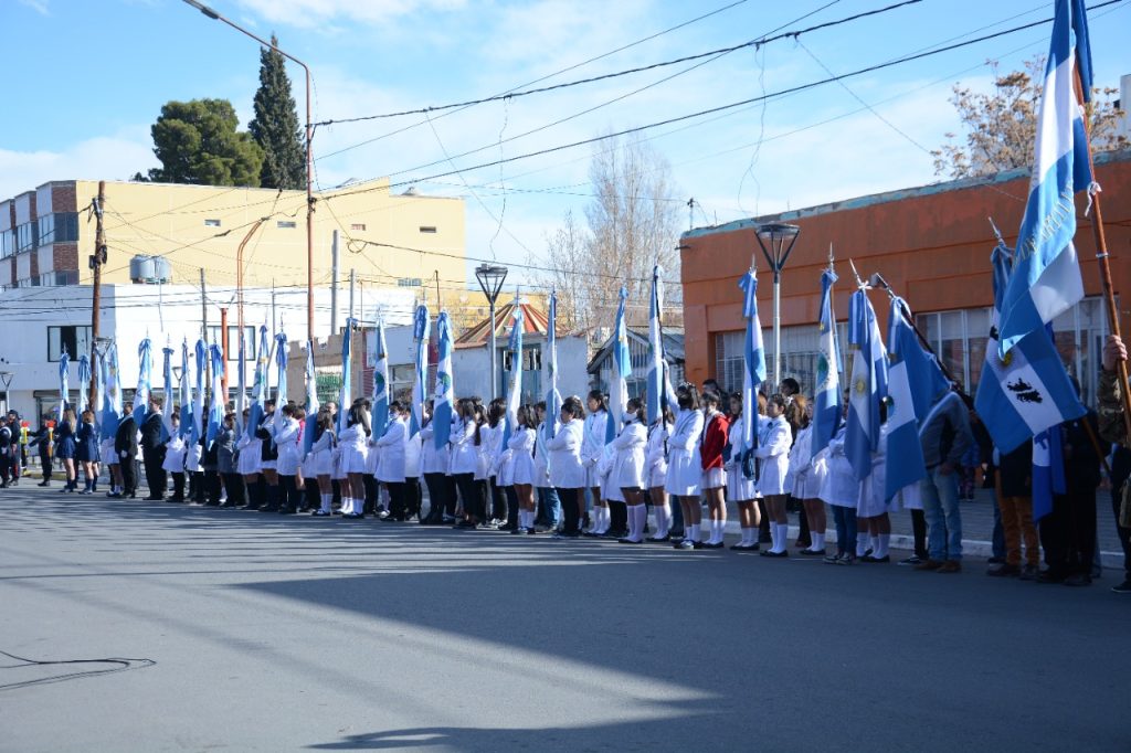 Además de las escuelas que enviaron a abanderados y escoltas, las instituciones intermedias y se contó con la presencia de la Banda Militar del Grupo de Artillería 16 del Ejército Argentino, con asiento en Zapala.