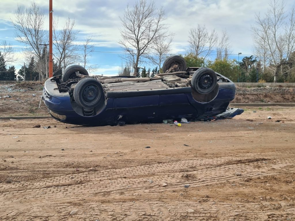 Un único protagonista tuvo el vuelco de esta tarde, entre el kilómetro 1.324 y 1325 de la Ruta 22. El conductor del automóvil Fiat Palio sufrió un desperfecto sobre la cinta asfáltica y luego no pudo controlarlo hasta que terminó sobre la avenida Córdoba, después de dar al menos un tumbo y terminó con el techo apoyado sobre el suelo.