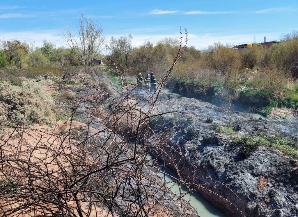 Esta tarde, se registró un incendio de pastizales en el canal colector de crecientes, a la altura de Plaza Huincul. Los bomberos voluntarios huinculenses acudieron al lugar para sofocar las llamas que se extendieron a lo largo de varios metros.