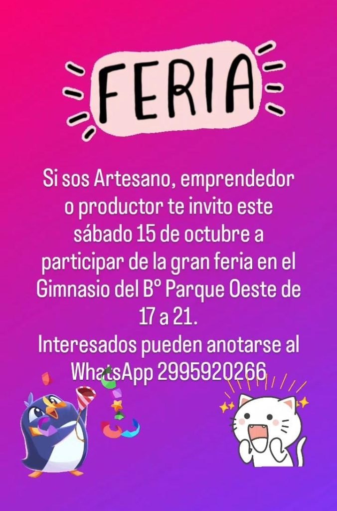 En Cutral Co la opción es ir a la feria que se realizará en el barrio Parque Oeste, el sábado 15, en el gimnasio que se emplaza en ese sector. Será desde las 17 a las 21 y se podrán comprar los productos que ofrecerán en los stands de productores y emprendedores.