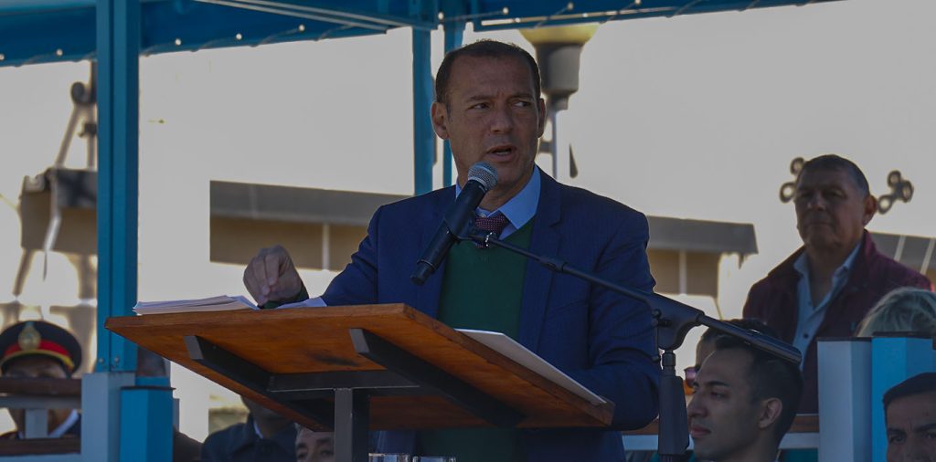 El gobernador Omar Gutiérrez habló en el aniversario 89 de Cutral Co. En su discurso le respondió al pedido del intendente José Rioseco para que provincia pueda hacer un reservorio y describió los trabajos que la provincia ejecuta en la ciudad y el grado de avance que tienen.