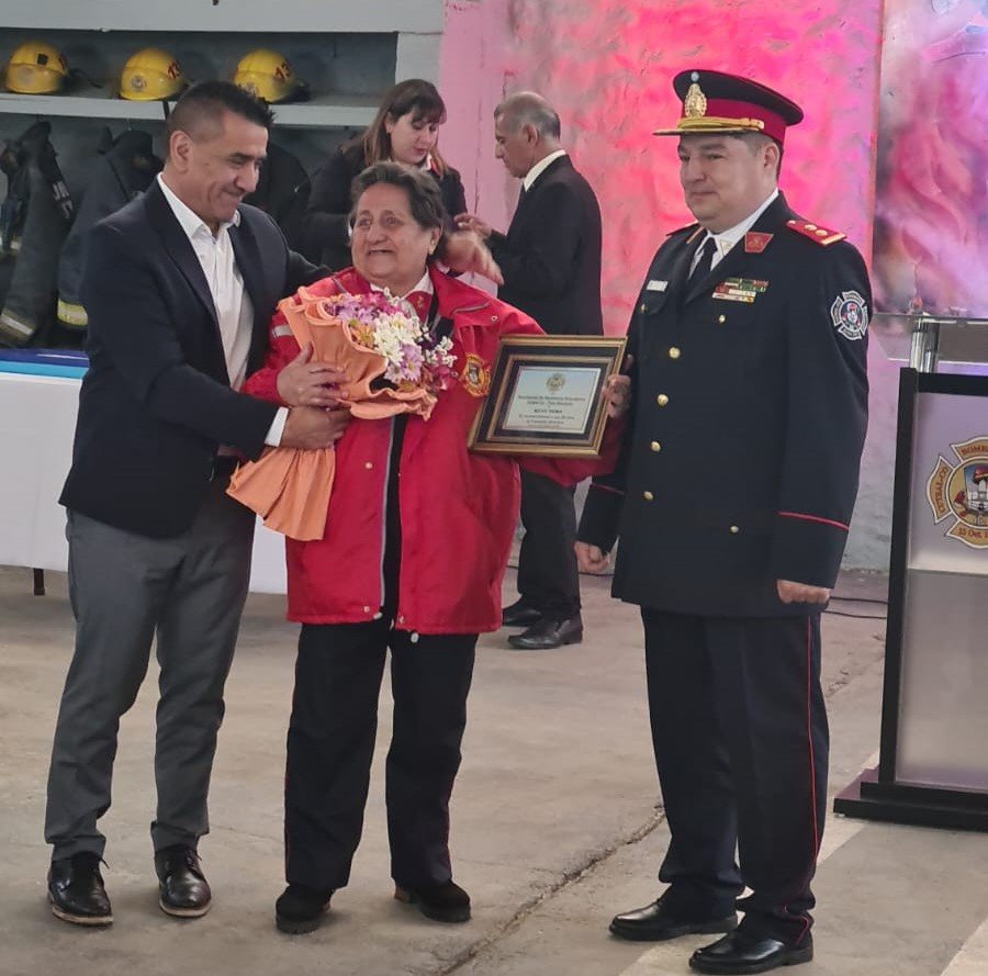 En el acto hubo ascenso a bomberas de las aspirantes Romina Tapia y Florencia Fuentes. Se les entregó un diploma por la labor en una maniobra de RCP que le hizo a una niña a Gabriela Lagos.