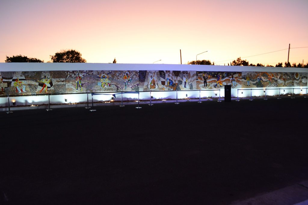 A su vez, Ana mencionó que fue un “trabajo bastante arduo, el diseño fue en conjunto de ir seleccionando los bocetos, me tocó el trabajo de obra y cortar cerámicos, porcelanatos, azulejos, y después montarlo que tuvimos ayuda de gente amiga, son piezas pesadas, para fragmentarla, hay tarea de albañilería”. Demandó seis meses de trabajo para concluir con los 30 metros de largo por un metro cincuenta de altura.
