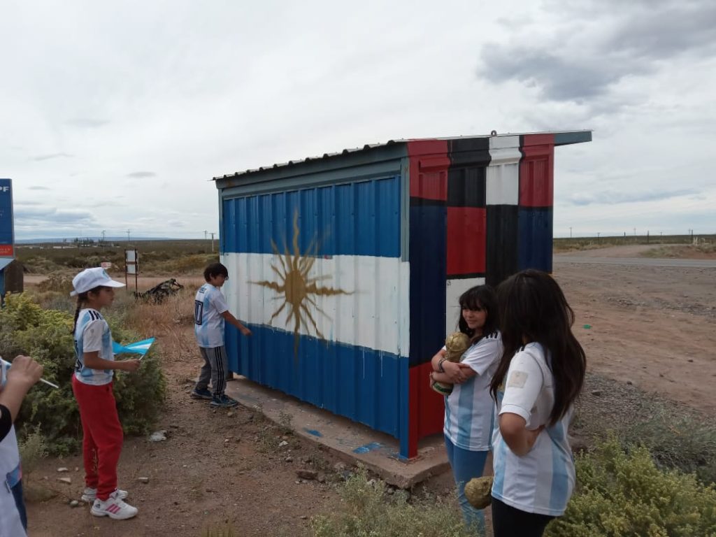 Como parte de las propuestas, realizaron el último día una salida con réplicas de la copa del mundial de fútbol que elaboraron las y los alumnos con el material reciclado, según explicó el profesor Nicanor Esteban Pérez.