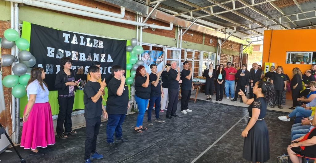 El acto por un nuevo aniversario del taller laboral Esperanza que contiene a personas con discapacidad tuvo hoy además de baile y una canción en lengua de Señas, el anuncio del intendente José Rioseco que volverán a producir a pleno para el año 2023. Además, si están todos en condiciones de salud podrán viajar en la colonia de vacaciones, que había antes de la pandemia de coronavirus, a Las Grutas.