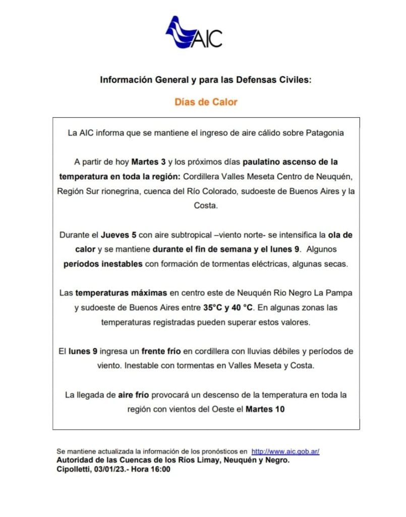 Desde hoy empezarán a registrar los días de temperaturas elevadas en la comarca petrolera como en el resto de la provincia. La máxima estimada para será de 34° centígrados.