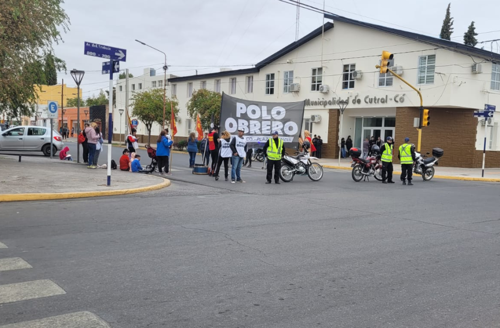 Dos organizaciones sociales estuvieron esta mañana con una protesta frente al edificio municipal cutralquense, en Elordi y avenida del Trabajo.