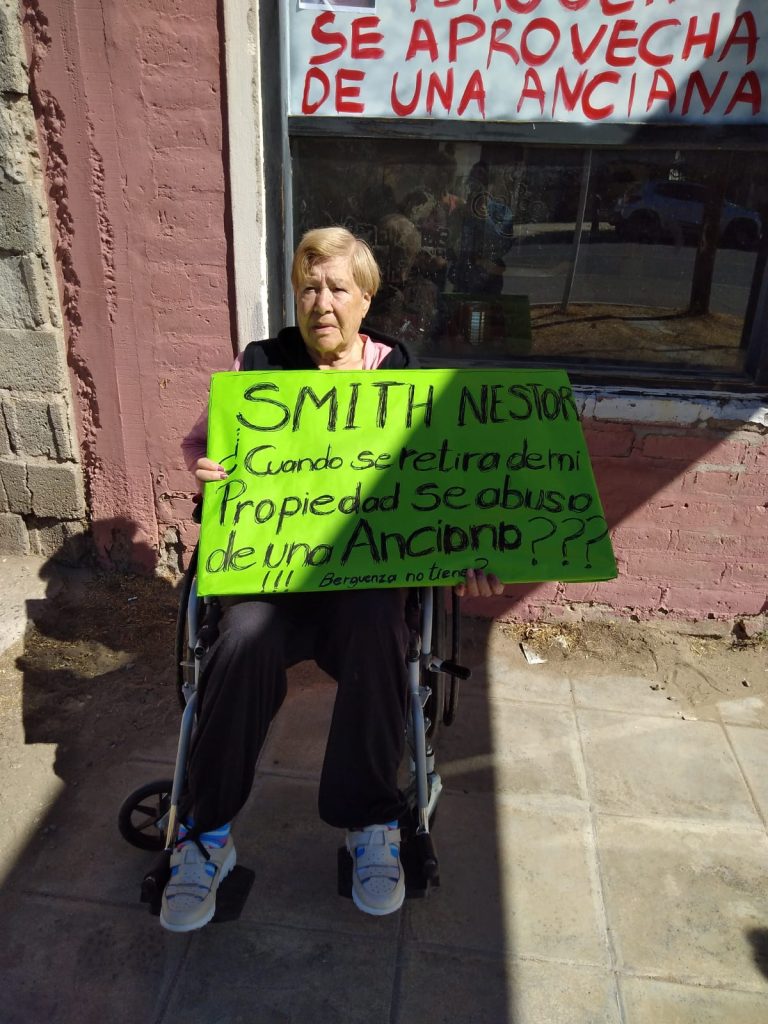 “No quiso renovar el contrato, y nunca abrió el local y no quiere salir”, explicó una sobrina. La vecina quedó viuda y desde ese momento el inquilino se negó a retirarse. La familia de doña Ángela indicó que desde esta mañana, ella permanece sentada en su silla de ruedas, afuera del local con carteles.